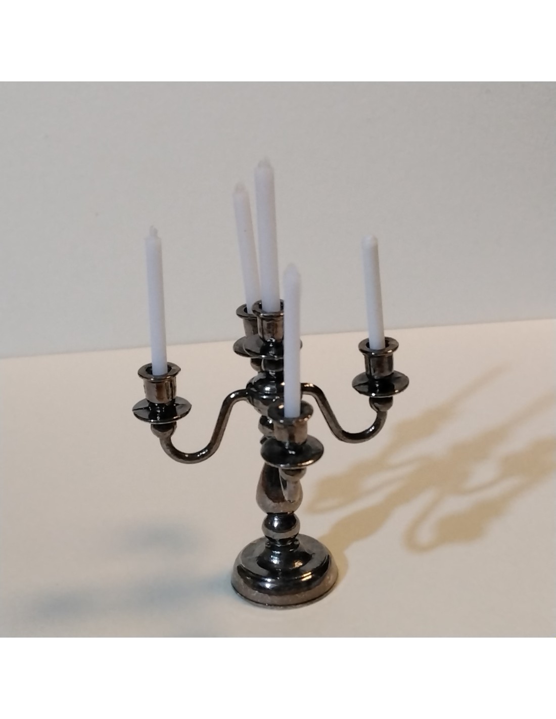 Candelabro de 5 brazos, no eléctrico, color acero.